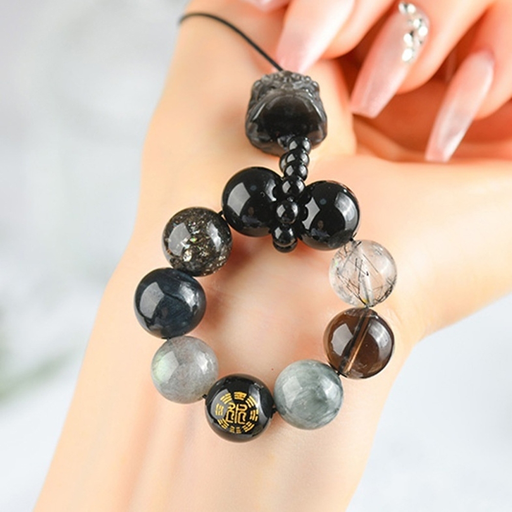 水 - 銀曜石、黑瑪瑙、黑髮晶、茶晶、鷹眼石、灰月光、藍虎眼、黑閃靈