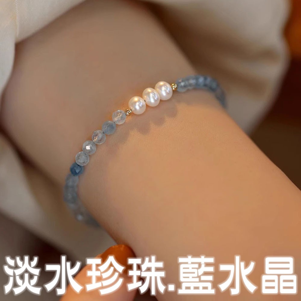 👜 材質:淡水珍珠、海藍寶水晶、S925銀