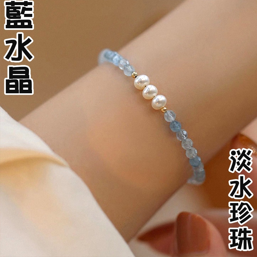 👜 材質:淡水珍珠、海藍寶水晶、S925銀