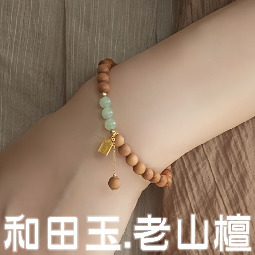 👜 材質:天然和田玉、天然老山檀、14K包金