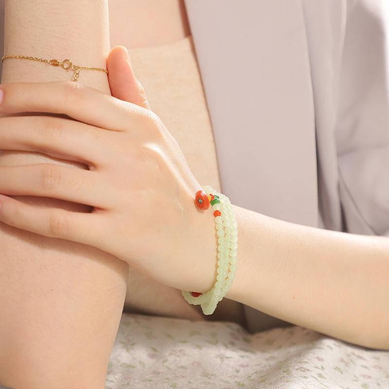 台灣現貨 圓珠手鍊 招財手鍊 保平安 玉手鍊 手鍊 手串 佛珠 和田玉手串 手環 細手鍊 送媽媽 生日禮物 058 B