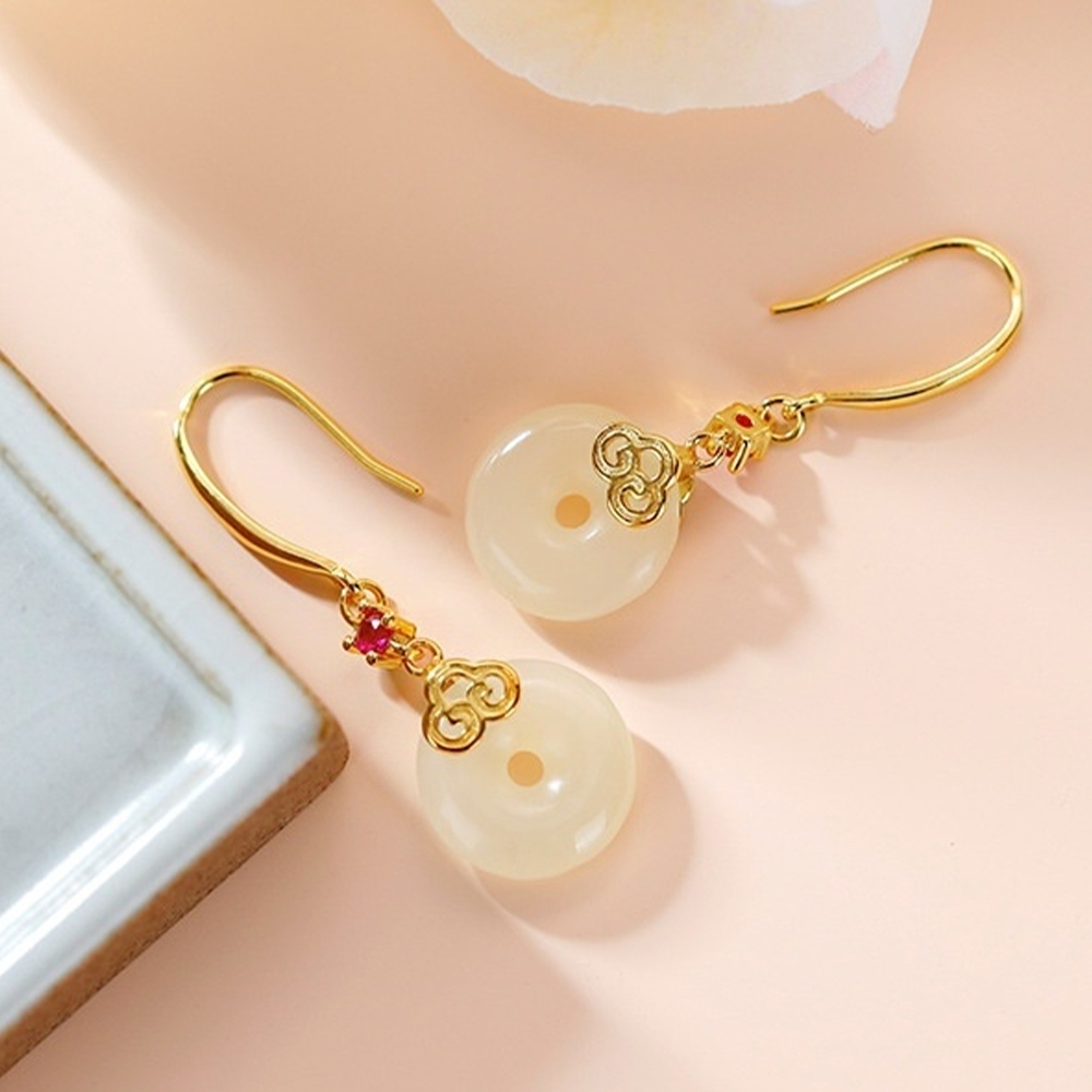 當天出貨 高級感 宮廷風 玉石耳飾 耳環 耳墜 玉耳環 和田玉耳環 吊墜耳環 平安扣耳墜 新中式 生日禮物 062 D
