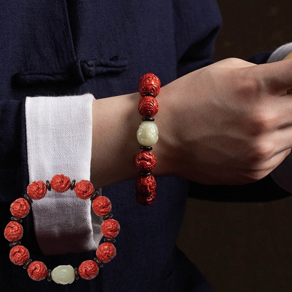 👜 商品尺吋:紅硃砂珠約1.5公分、和田玉貔貅1.8公分*1.2公分