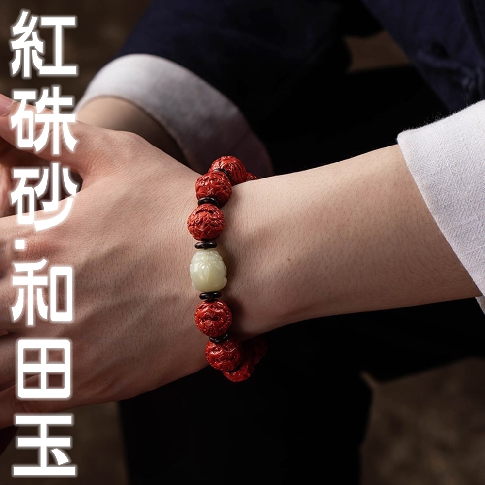 👜 商品尺吋:紅硃砂珠約1.5公分、和田玉貔貅1.8公分*1.2公分