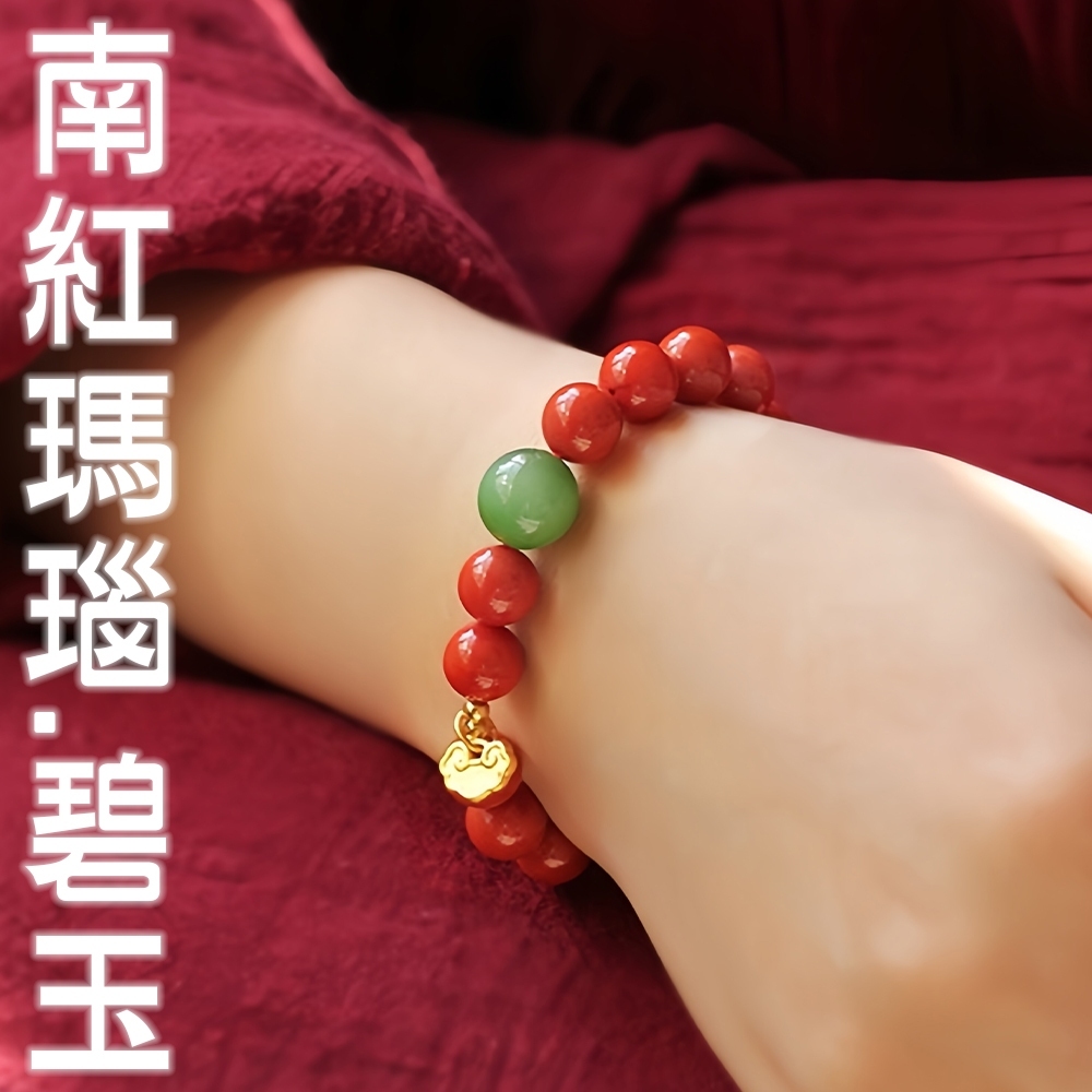 👜 商品尺吋:南紅珠約0.8公分、碧玉珠約1公分、如意鎖1.3公分*1公分