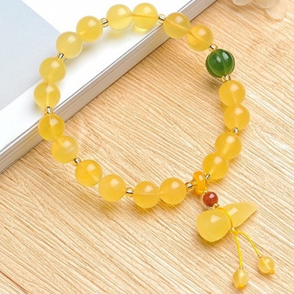 台灣現貨 圓珠 琥珀蜜蠟手鍊 保平安手鍊 玉葫蘆 佛珠 玉手鍊 手串 蜜蠟手串 簡約飾品 送女生 生日禮物 072 B