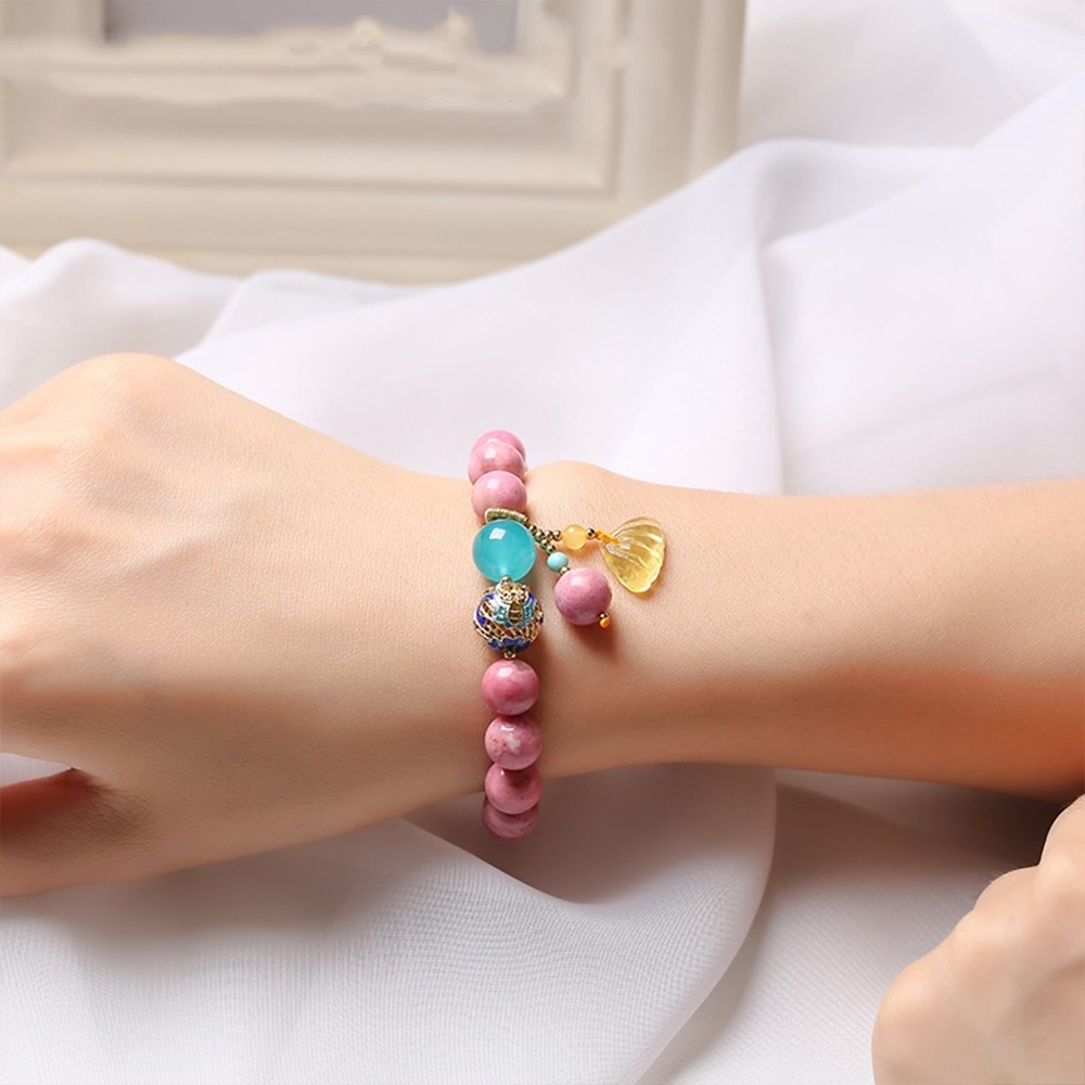 台灣現貨 天然薔薇輝石 手鍊女 佛珠 玫瑰石手鍊 粉寶石手鍊 閨蜜手鍊 送閨蜜 天河石手鍊 手串 送女生禮物 091 B