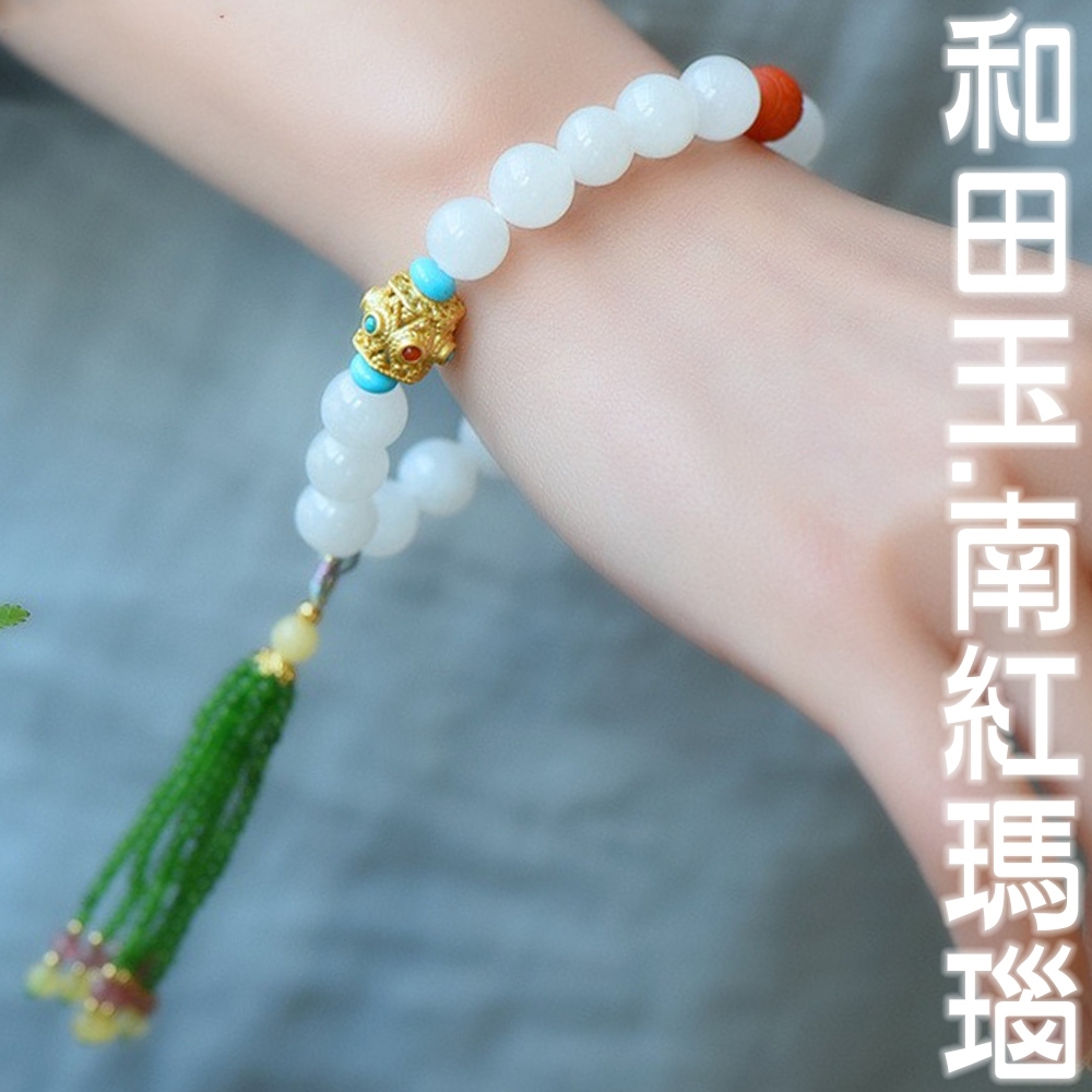 👜 材質:天然和田玉、玉髓南紅瑪瑙、菱鎂礦、S925銀(12層電鍍工藝,不易氧化、不易過敏和掉色)