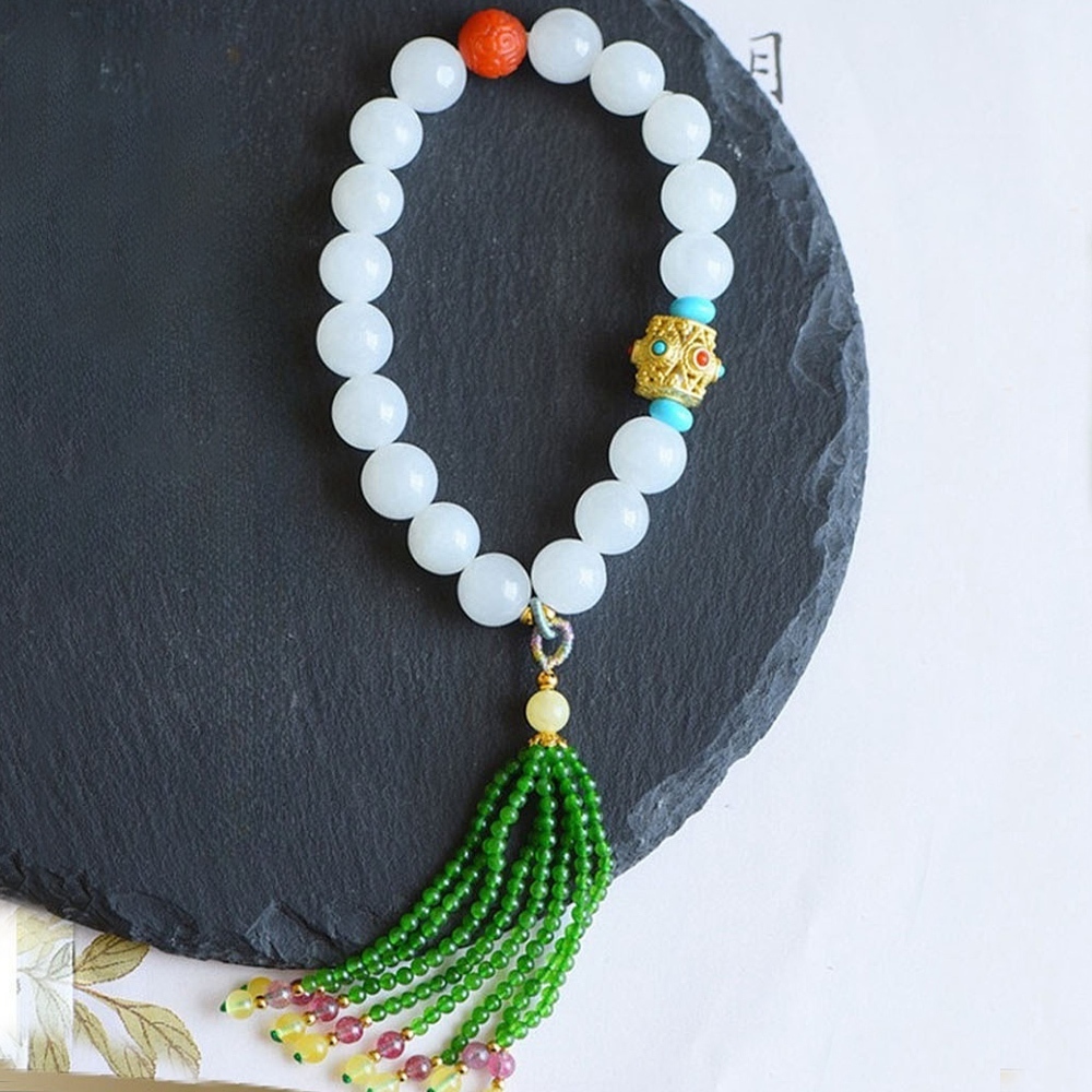 當天出貨 天然和田玉 民族風手鏈 流蘇手鏈 南紅瑪瑙 玉手鍊 手串 手鍊 串珠手鍊 送閨蜜禮物 鐵白雲石 092 D