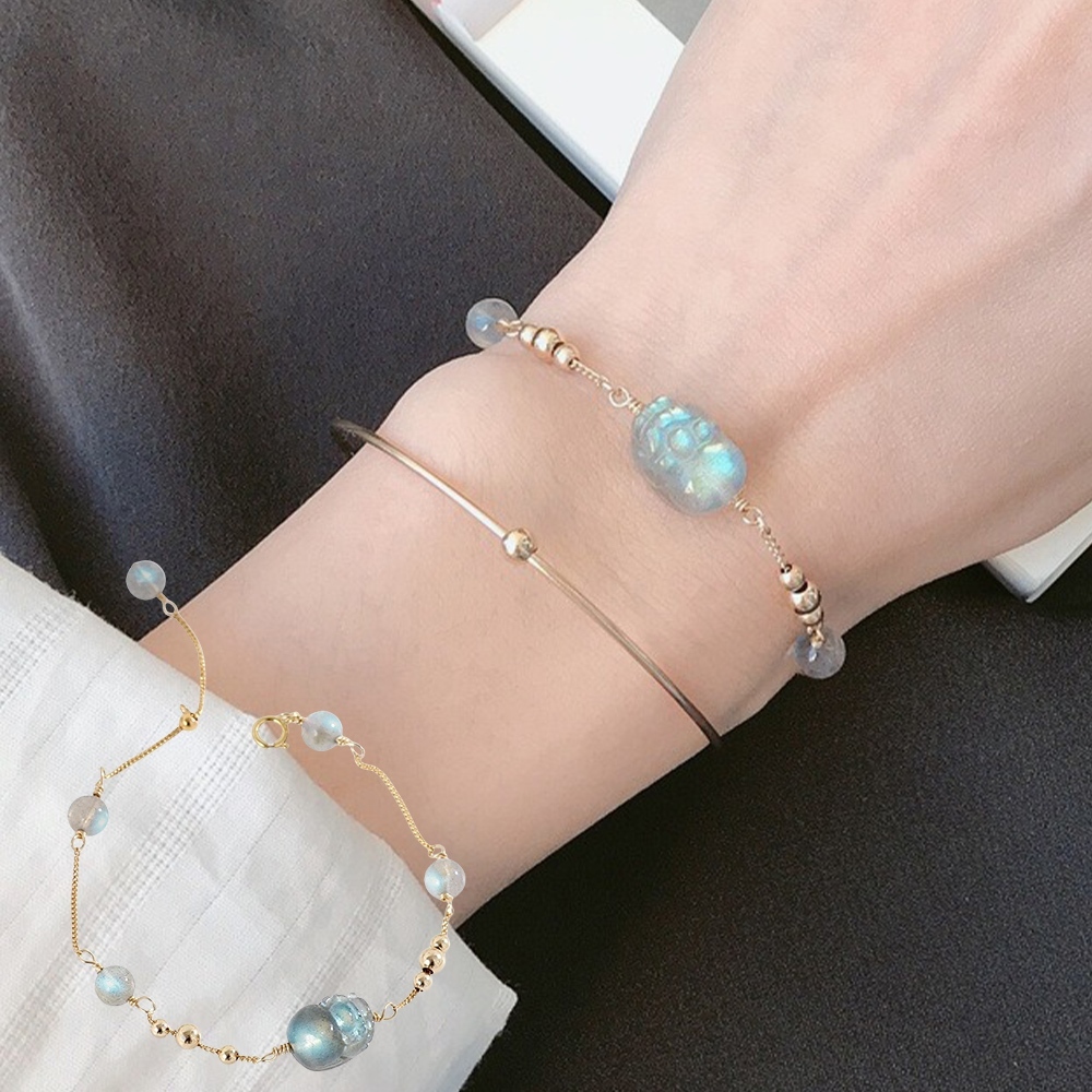 超高品質手鍊 14K包金 月光石手鍊 水晶手鍊 金手鍊 細手鍊 氣質手鍊 女神同款 保平安 幸運手鍊 禮物 093 C