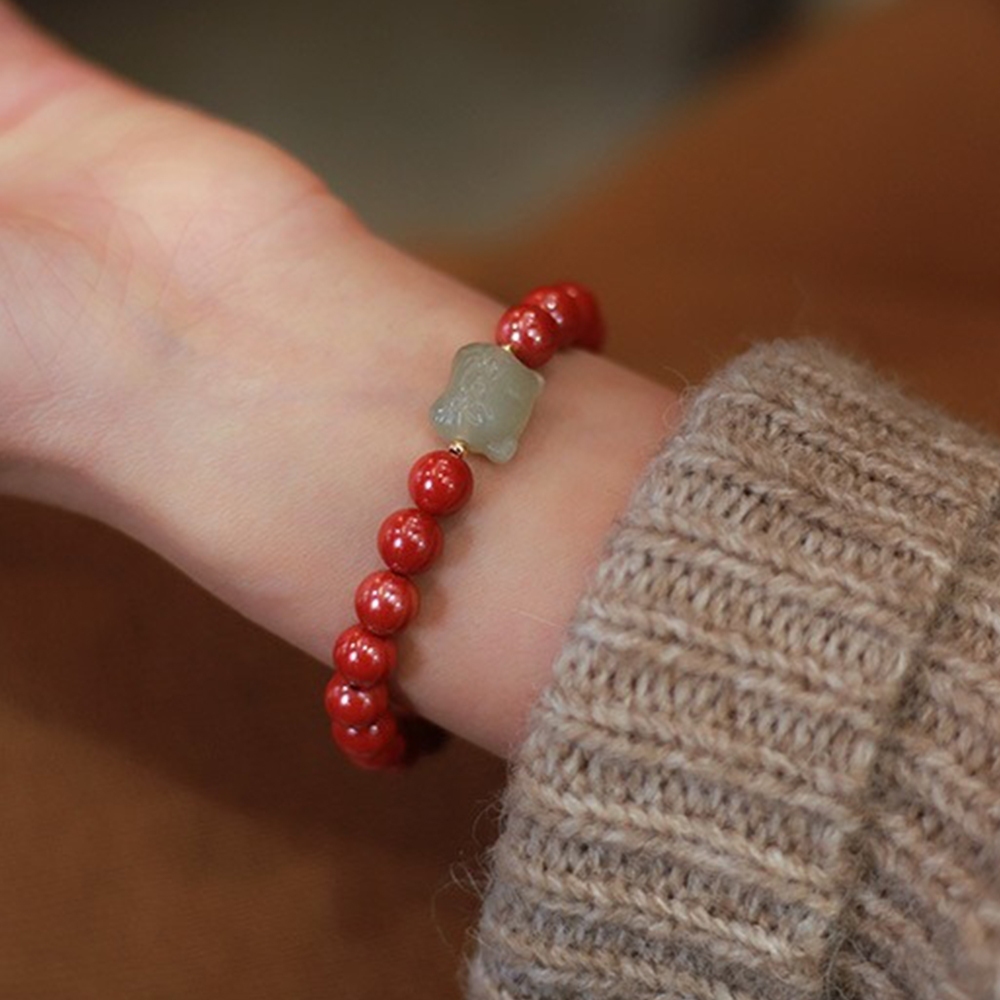 👜 材質:硃砂原礦原石、和田玉、蜜蠟、14K包金珠