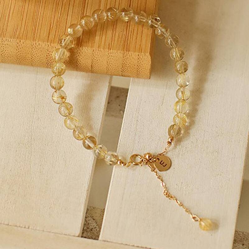 超高品質 水晶串珠 黃水晶手珠 送閨蜜 百搭手鍊 黃水晶手鍊 圓珠手鍊 14k包金 手串 閨蜜手串 招財手鍊 102 C