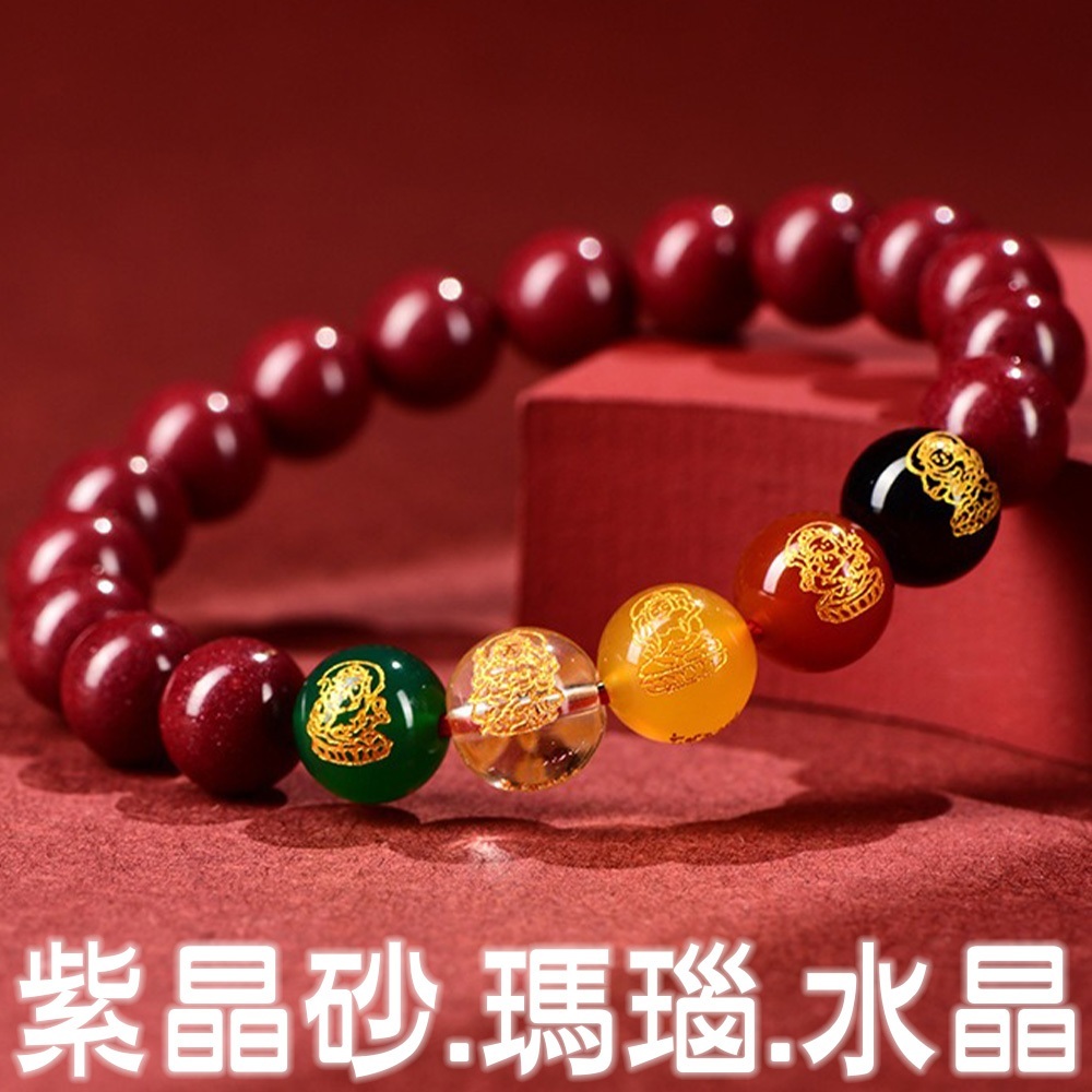 👜 材質:高含量原礦紫金砂、綠/黃/紅/黑瑪瑙、白水晶