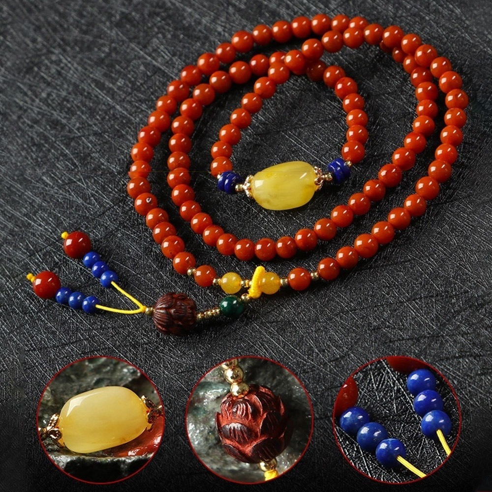 ✨ 材質:南紅瑪瑙、青金石、黃蜜蠟、鑄件