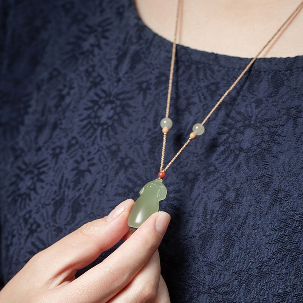 ✨ 商品尺吋:旗袍約1.4cm*3cm、玉珠約0.55cm,鍊長72cm可調節