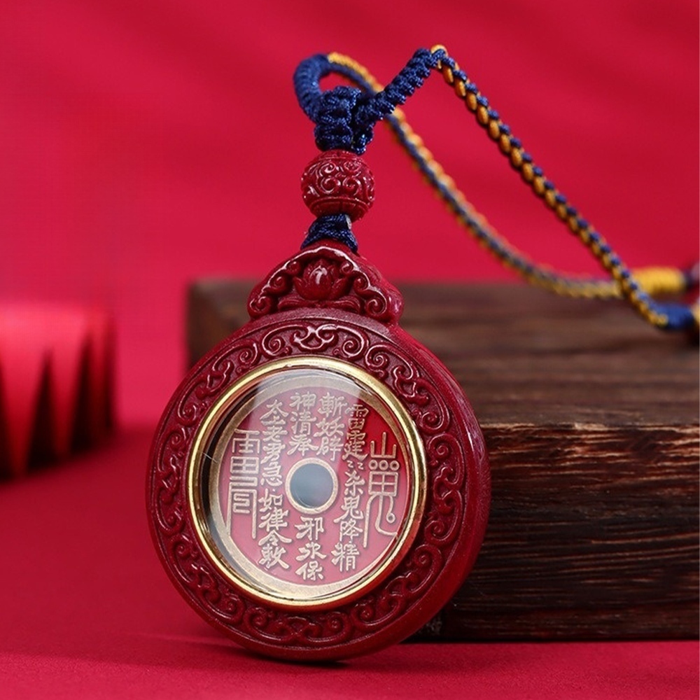 ✨ 商品尺吋:編繩總長約70公分(可調整長短),帝王砂圓珠徑-9mm,山鬼花錢吊墜-47*40*15mm