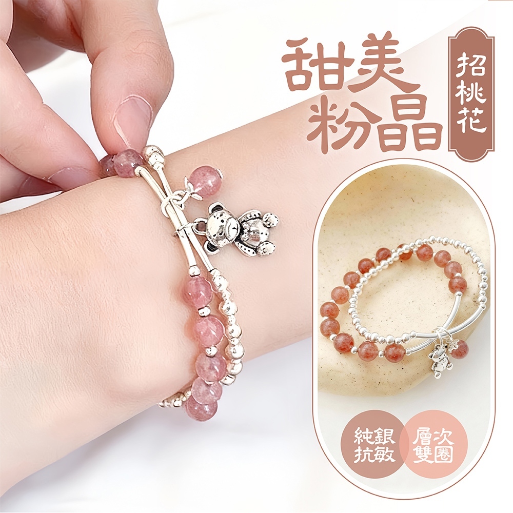 ✨ 商品尺吋:草莓晶約8mm、小熊吊墜-長1cm、高1.5cm(有彈性) 、建議手圍15~16cm