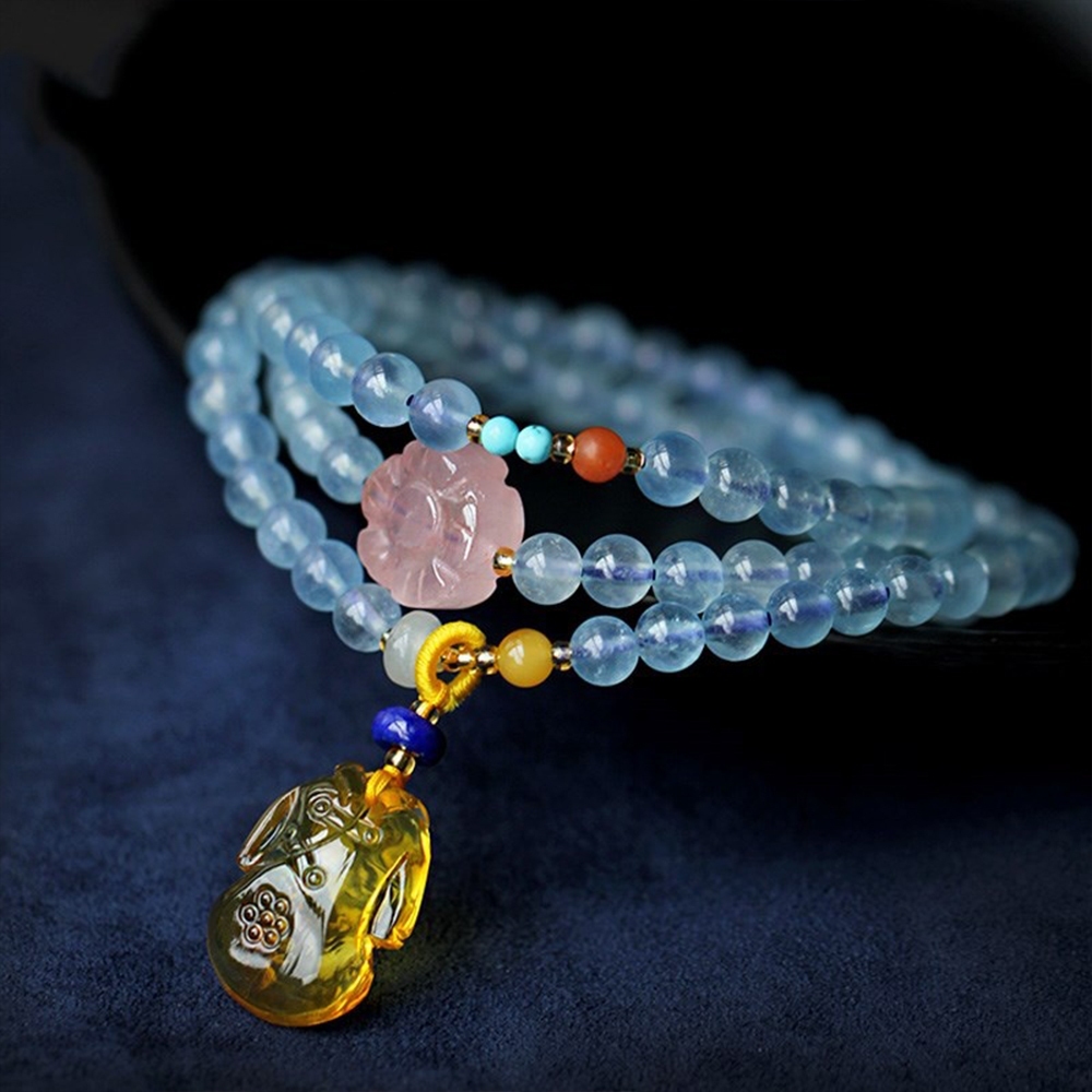 ✨ 商品尺吋:旗袍 高2cm*長1.2cm、海藍寶石0.4cm,內全長約52cm(有彈性可繞3圈)