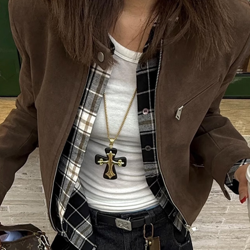 ✨ 商品尺吋:項鍊-鍊長42+5CM(加長鍊)、十字架吊墜長6.5CM高8CM、耳釘-約5.3*3CM