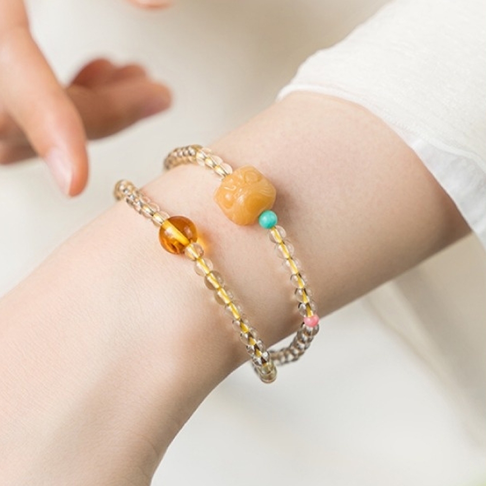 ✨ 材質:黄水晶、菩提、金箔珠