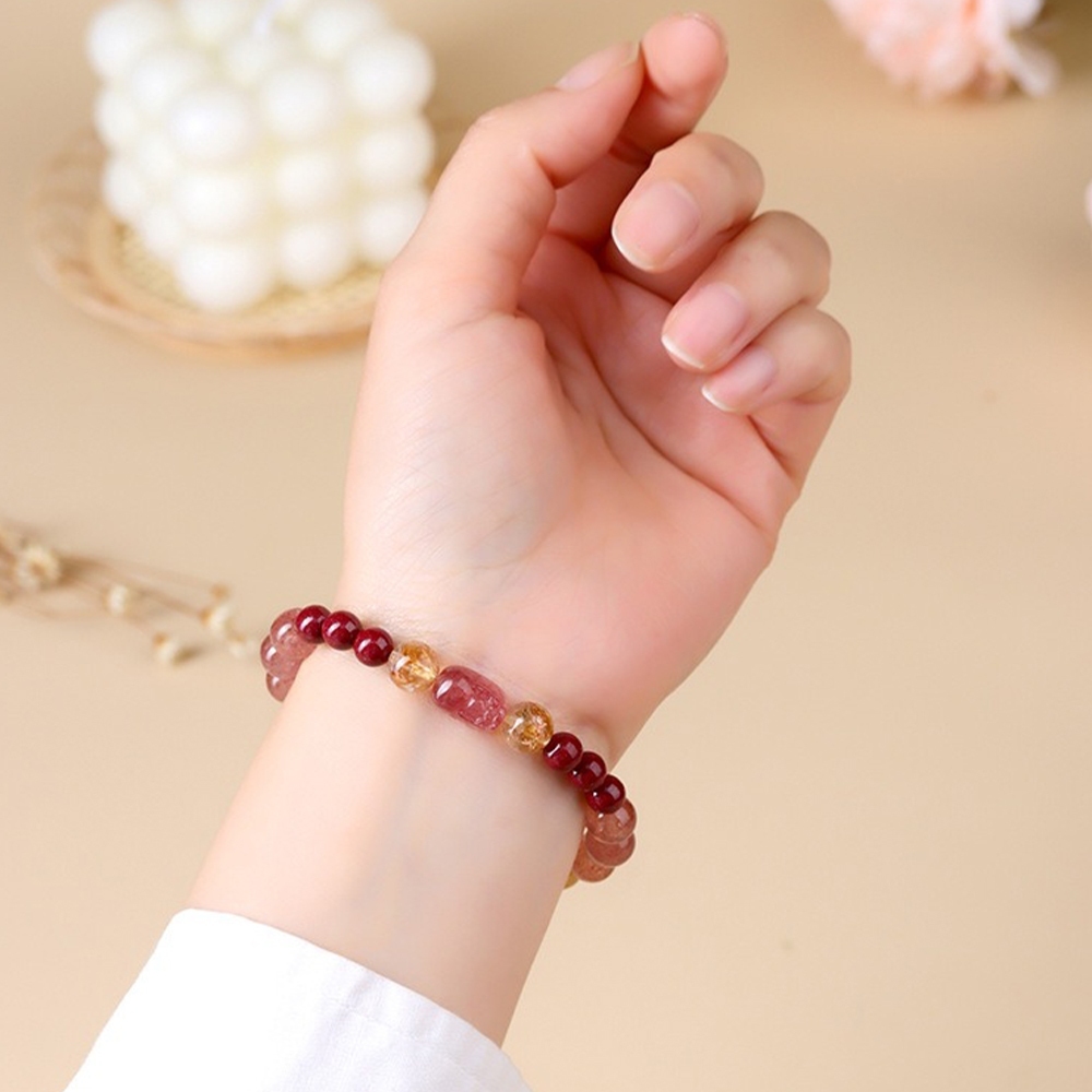 ✨ 材質:草莓晶、黃塔晶、黃水晶、硃砂