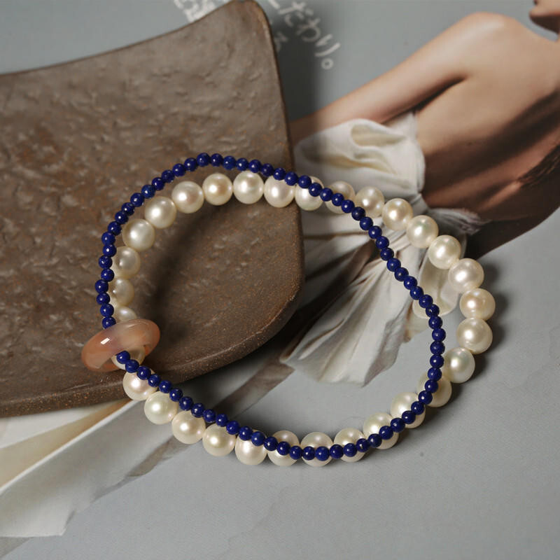 ✨ 材質:天然淡水珍珠、青金石、冰飄南紅瑪瑙
