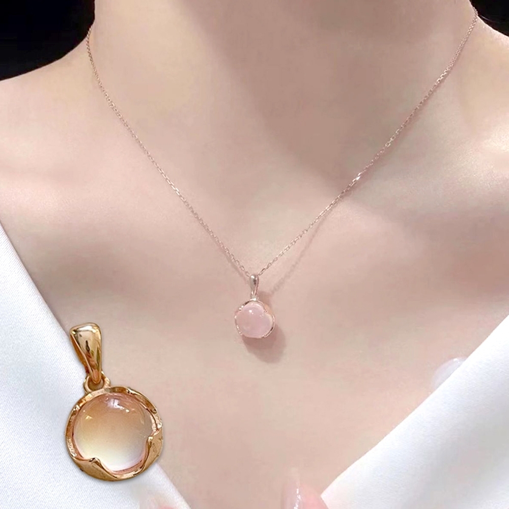 台灣現貨 短項鍊 寶石項鍊 桃花項鍊 純銀項鍊 粉水晶項鍊 飾品項鍊 四葉草項鍊 玫瑰金項鍊 女生禮物 送禮 137 B