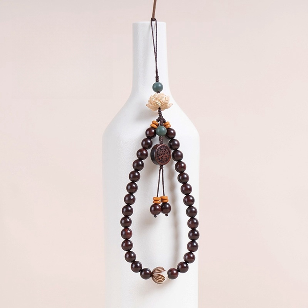 超高品質 小葉紫檀 手腕掛繩 黃楊木掛飾 手機腕繩 手機掛繩 佛珠 蓮花掛飾 手機掛鍊 送長輩 生日禮物 010 C