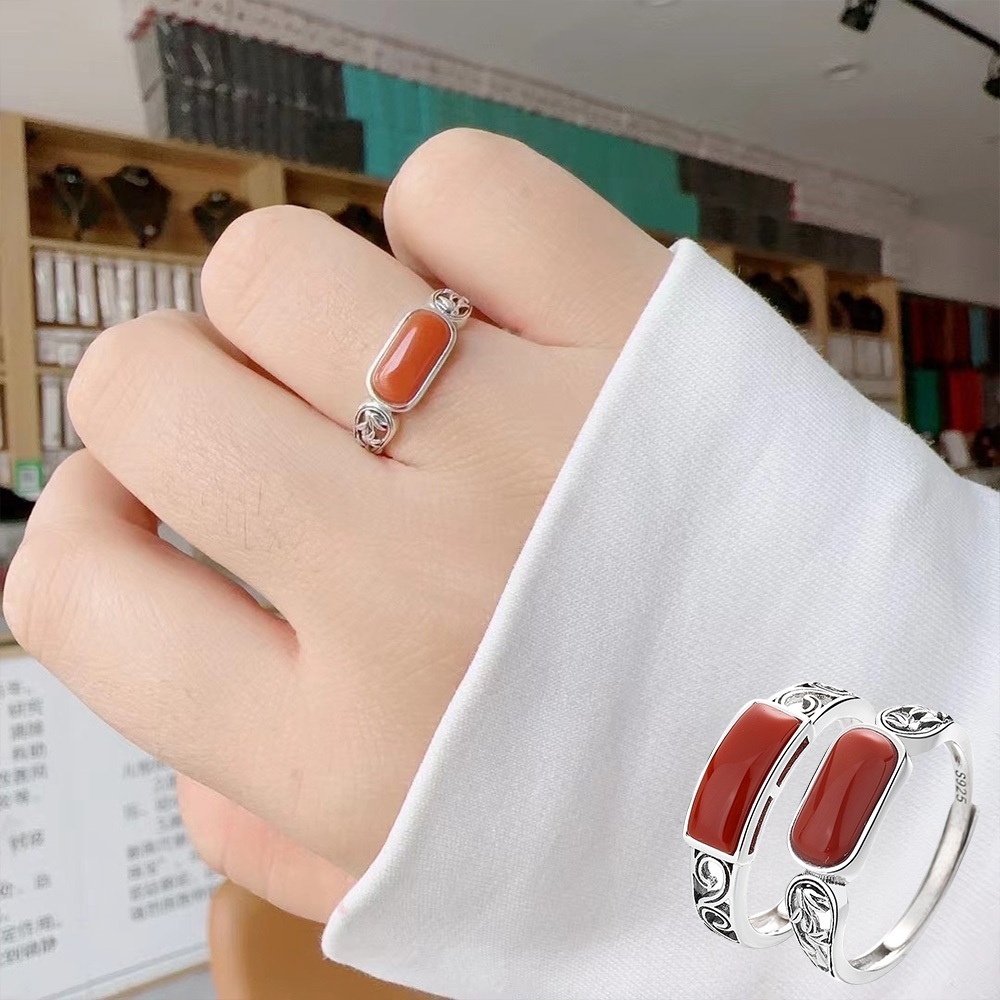 超高品質戒指 指環 鏤空戒指 南紅戒指 方形戒指 開口戒指 瑪瑙戒指 個性戒指 中性戒指 生日禮物 交換禮物 066 C